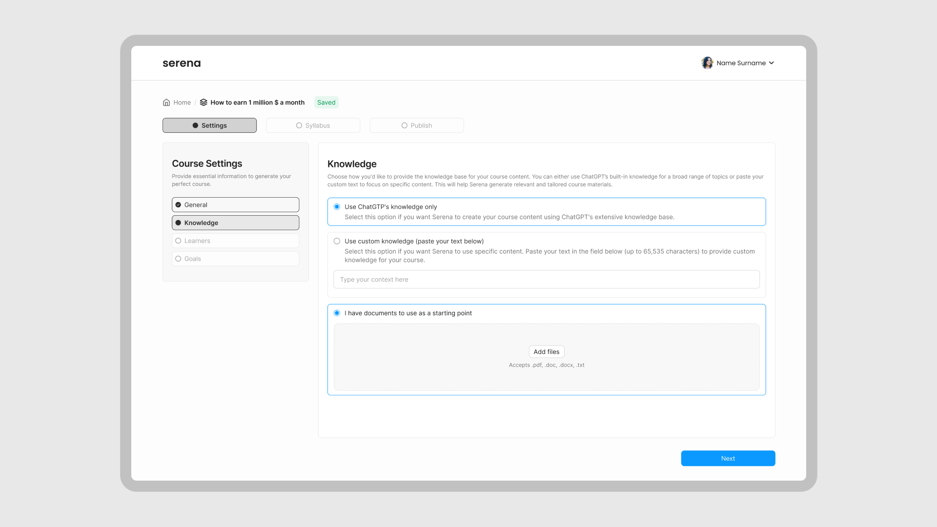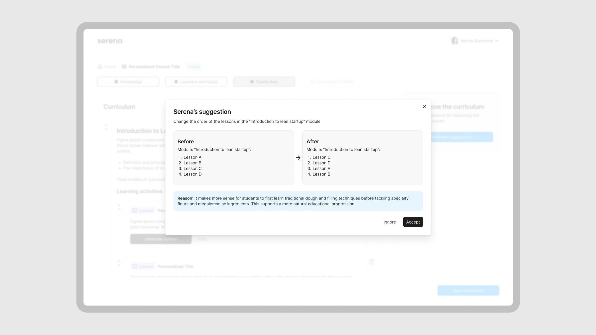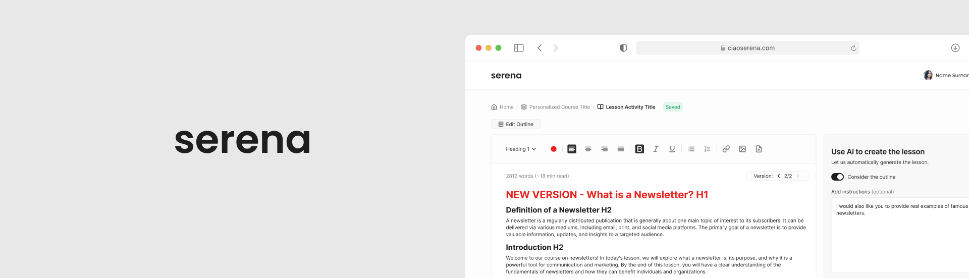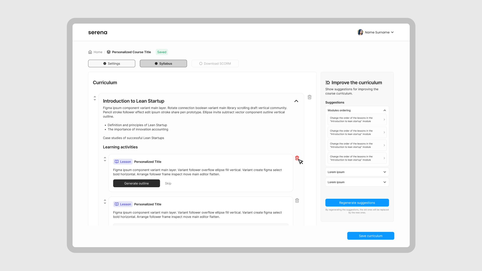 Serena is an AI-powered platform designed to help educators, trainers, and product owners generate full course syllabi in just minutes.